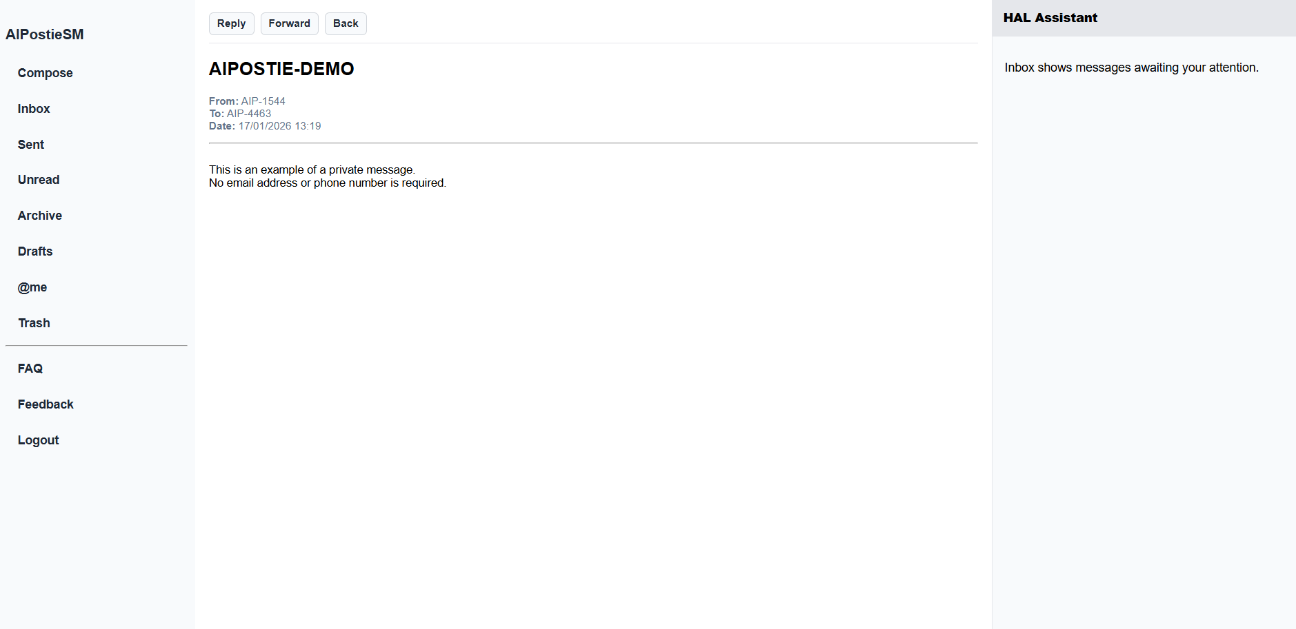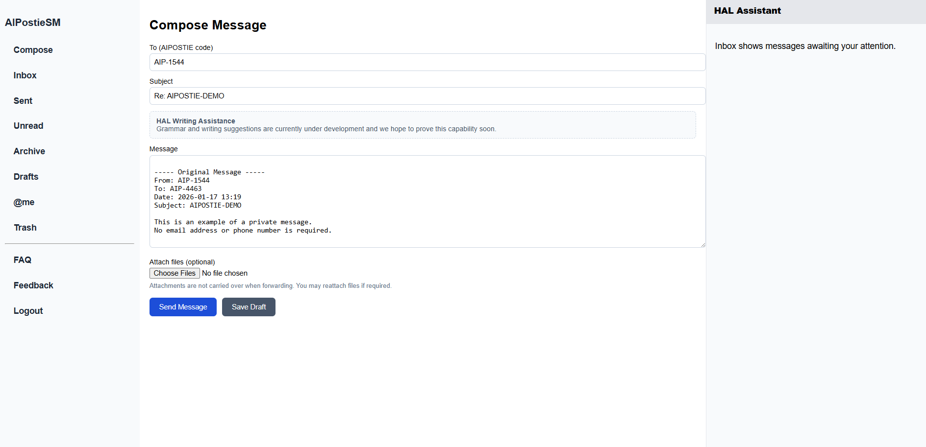 You communicate using a private access code instead of an email address. Your identity is abstracted.