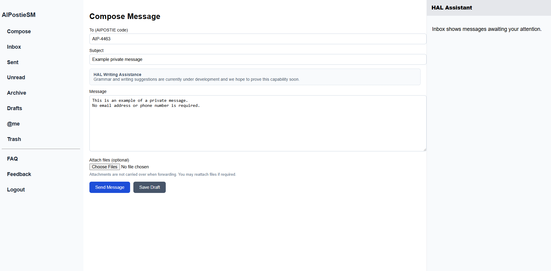 You communicate using a private access code instead of an email address. Your identity is abstracted.
